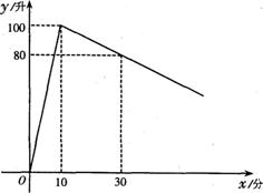 (1)求在第一个加工过程中,油箱中油量y(升)与机器运行时间x(分)之间的函数关系式(不必写出自变量x的取值范围);