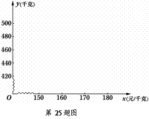 ① 请你在所给的平面直角坐标系中,以实际售价x(元/千克)为横坐标,月销售量y(千克)为纵坐标描出各点,观察这些点的发展趋势,猜想y与x之间可能存在怎样的函数关系;