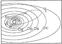 [例5](2008江苏)读“公转轨道相邻的三大行星相对位置示意图”,回答:与①、②行星相比,地球具备生命存在的基本条件之一是