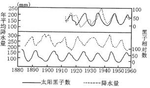 (1)上图表明,许多地带的降水量与黑子相对数之间有一定的 。
