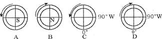 D.从北极上空看,地球呈逆时针方向旋转,从南极上空看,地球呈顺时针方向旋转