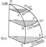(4)A点和B点随地球自转一周,所走的路程是A比B ,A的线速度比B的线速度 。