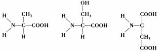 9.如图依次为丙氨酸、丝氨酸和天门冬氨酸的结构式。由这三种氨基酸脱水缩合