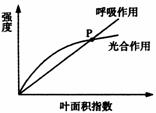 一株自然条件下生长的成年果树,总叶面积(叶面积指数)与呼吸作用和光合作用强度的变化关系如图曲线所示。若使P点右移可达到增产目的,据图,使P点右移的最简便、有效的方法是