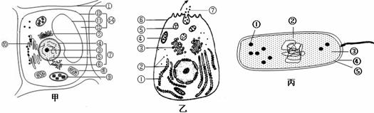 (4)若丙中①表示某种细胞器,则乙中表示该细胞器的标号是 。