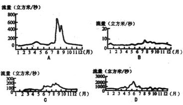 如图所示为河流流量过程曲线图,其中表示我国亚热带季风气候区河流流量过程的是