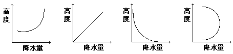 此高山若不受其它因素影响,下列图中最能反映表示降水量与高度关系的是