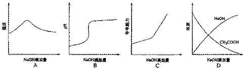 。(宁夏理综卷第11题)将氢氧化钠稀溶液滴加到醋酸稀溶液中,下列各图示意混合溶液有关量或性质的变化趋势,其中错误的是