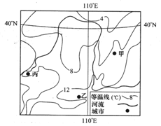 24.图中甲城市西侧的等温线向南弯曲,乙城市所在
