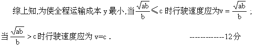 输成本(以元为单位)由可变部分和固定部分组成:可变部分与速度