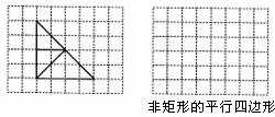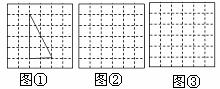 (1)请你在图①中画一条直线将格点三角形分割成两部分,将这两部分重新拼成两个不同的格点四边形,并将这两个格点四边形分别画在图②,图③中;![]()