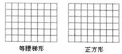 10.(·襄樊市)如图,方格纸中有一透明等腰三角形纸片,按图中裁剪线将这个纸片裁剪成三部分.请你将这三部分小纸片重新分别拼接成;(1)一个非矩形的平行四边形;(2)一个等腰梯形;(3)一个正方形.请在图中画出拼接后的三个图形,要求每张三角形纸片的顶点与小方格顶点重合.![]()