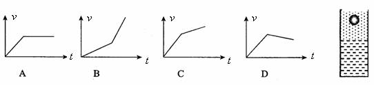 5、如图一个圆筒形容器内部盛有两种液体,它们的密度不同但又互不相溶,因而分成上下两层。有一铝制小球,从容器的上部液面由静止开始下落。不计液体对铝球的摩擦阻力,则铝球向下运动的速度随时间变化关系图线不可能是: