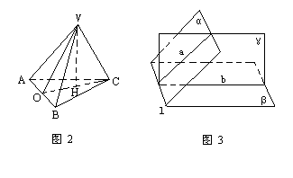 例1 已知:如图2,四面体V-ABC中,VA=VB=VC=a,AB=BC=CA=b,VH⊥面ABC,垂足为H,求侧面与底面所成的角的大小.