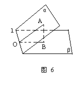 特征(3)显示,如果二面角α-l-β的两个半平面之一,存在垂线段AB,那么过垂足B作l的垂线交l于O,连结AO,由三垂线定理可知OA⊥l;或者由A作l的垂线交l于O,连结OB,由三垂线定理的逆定理可知OB⊥l.此时,∠AOB就是二面角α-l-β的平面角.(如图6)