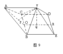 如图9,过两个几何体的高线VP,VQ的垂足P,Q分别作BC的垂线,则垂足重合于O,且O为BC的中点.