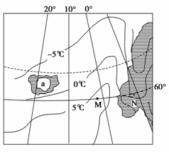 影响图中M、N两处等温线发生明显弯曲的主要因素分别是 A.海陆分布,纬度位置