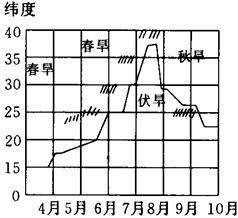 C.由南向北推移--光照 D.西部早于东部--湿度