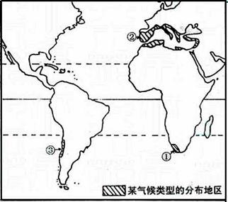 右图示意世界某种气候类型的局部分布地区。完成30-32题。