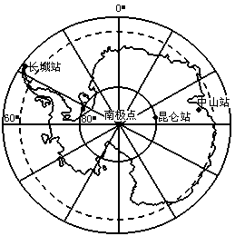 (2)南极中山站位于拉斯曼丘陵(69°22′S, 76°23′E),极昼时间为54天。据此推算,中山站极昼开始的日期大约为 ,这一天太阳直射点的纬度是 。(2分)