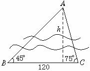 欲测河的宽度,在一岸边选定A、B两点,望对岸的标记物C,测得∠CAB=45°,∠CBA=75°,AB=120