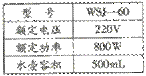 10.(2008大连)某电热水器,额定功率为2000W。当热水器正常工作70min时,可将50kg的水从20℃加热到58℃。(水的比热容为4.2×103 J / (kg·℃)。 试求: (1)这50kg水吸收的热量是多少? (2)热水器消耗的电能是多少? (3)热水器的效率是多少? 11.(2008南宁)“绿色奥运、科技奥运、人文奥运”是2008年北京奥运的三大主题。其中国家体育馆“鸟巢工程”采用太阳能电力这一绿色能源。令专业建筑专家惊叹的是,“鸟巢”的设计,不仅是能够获得自然通风,而且4.2×105kg的钢结构靠自身的24根钢柱支撑。 (1)给“鸟巢”工程供电时,若功率为130kW的太阳能发电系统连续正常工作100min,可得到多少焦耳的电能,如果这些电能有42%转化为水的内能,则可以使l 04kg水温度升高多少摄氏度,[水的比热容c=4.2×103J / (kg·℃)] (2)若每根钢柱的横截面积为1.5m2。,则平均每根柱子承受的压强为多大, 12.(2008聊城) 小明的新家想安装一台无水箱式电热水器,这种电热水器当有冷水流过它时,就能达到要求的温度而立即从喷头流出供淋浴。已知冷水温度为15℃,淋浴所需热水温度为40℃,电热水器一分钟流出热水的质量约为4kg,水的比热容为4.2×103J / (kg·℃). (1)将质量为4kg温度为15℃的冷水,加热到淋浴所需要的温度,水吸收的热量是多少? (2)如果不考虑热损失,无箱式热水器的电功率至少多大才能满足淋浴的要求? (3)小明新家的电路允许通过的最大电流为30A,问他家能不能使用该电热水器? 13. (2008扬州)下图是啸宇家新买的一台快速电水壶,这台电水壶的铭牌如下表。为了测量该电水壶烧水时的实际功率,啸宇用所学知识和爸爸合作进行了如下实验: 关掉家里所有用电器,将该电水壶装满水,接入家庭电路中,测得壶中水从25℃上升到35℃所用的时间是50s.同时观察到家中“220V 10A(40A) 3200imp / (kW·h)”的电子式电能表耗电指示灯闪烁了80imp。请根据相关信息解答下列问题。 (C水=4.2×103J / (kg·℃))