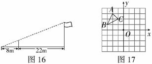 5.如图16了测量学校旗杆的高度,小东用长为3.2的竹竿做测量工具,移动竹竿,使竹杆、旗杆顶端的影子恰好落在地面的同一点,此时,竹竿与这一点相距8m,与旗杆相距22m,则旗杆的高为__________m.