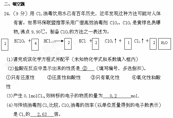 2009-2010届漳州三中高三化学科第二次月考卷