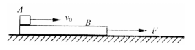(20分)如图示,物体A的质量m1=1kg。B的质量为m2=0.5kg、长L=1m,放在光滑水平面上。某时刻A以v0=4m/s的初速度滑到木板B的上表面,为使A不至于从B上滑落,在A滑上B的同时,给B施加一个水平向右的拉力F,若A与B之间的动摩擦因数μ=0.2,试求拉力F应满足的条件。(忽略物体A的大小)