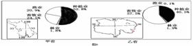 (4)差异:甲省以种植为主,畜牧业和渔业也占重要地位;乙省以畜牧业为主,种植业也占重要地位,渔业比重低。