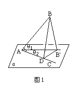 例1 如图1,AB和平面α所成的角是θ1;AC在平面α内,BB′⊥平面α于B′,AC和AB的射影AB′成角θ2,设∠BAC=θ.求证: