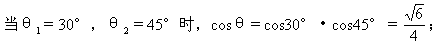 当θ1=45°,θ2=135°时,cosθ=cos45°·cos135°=