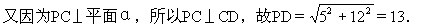 例3 如图3,已知:Rt△ABC在平面α内,PC⊥平面α于C,D为斜边AB的中点,CA=6,CB=8,PC=12.求: