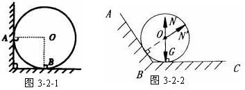 例2.如图3-2-1所示,一个球形物体静止于光滑水平面,并与竖直光滑墙壁接触,A、B两点是球跟墙和地面的接出点,则下列说法正确的是( )![]()