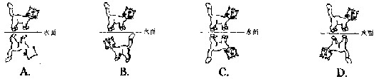 18、小猫在平静的池塘边欣赏自己在水中的像,下列图中正确的是:
