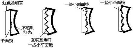 19、有一种自行车尾灯设计得很巧妙。当后面汽车的灯光以任何方向射到尾灯时,它都能把光钱“反向射回”。图是4种尾灯的剖面示意图, 其中用于反光的镜面具有不同的形状。能产生上述效果的镜面是: