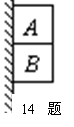 14.如图所示,A、B两物体叠放在一起,用手托住,让它们静止靠在墙边, 然后释放,它们同时沿竖直墙面下滑,已知mA>mB,则物体B( )![]()