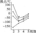 氢化物的沸点变化,每个小黑点代表一种氢化物,其中