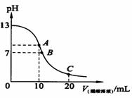 4、(山东省文登市天福山中学2009届高三第四次月考)25℃时,在20ml 0.1mol·L-1NaOH溶液中逐滴加入0.2mol·L-1醋酸溶液,曲线如图所示,有关粒子浓度关系的比较中,不正确的是( A )