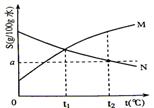 右图是M、N两种物质的溶解度曲线,在t2℃时往盛有100g水的烧杯中先后加入