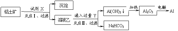 8、工业上用铝土矿(主要成分为Al2O3、Fe2O3)为原料冶炼铝的工艺流程如下: