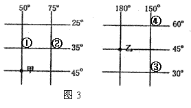 读右图(①、②、③、④为经纬线交点),回答4-6题![]()