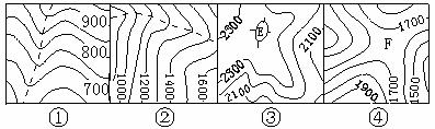 A.①山脊 ②山谷 ③鞍部 ④山顶 B.①山脊 ②山谷 ③山顶 ④鞍部![]()