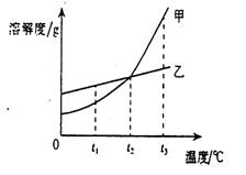 A、在t10C时,甲的溶解度小于乙的溶解度