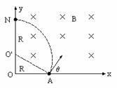 粒子在磁场中的轨道半径为R,其圆心位置如图中