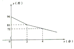 9、(绍兴06)某校部分住校生,放学后到学校锅炉房打水,每人接水2升,他们先同时打开两个放水笼头,后来因故障关闭一个放水笼头.假设前后两人接水间隔时间忽略不计,且不发生泼洒,锅炉内的余水量y(升)与接水时间x(分)的函数图象如图. 请结合图象,回答下列问题: (1)根据图中信息,请你写出一个结论;