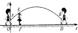 离为1米的点F处,绳子甩到最高处时刚好通过她的头顶点E。以点O为原点建立如图所示