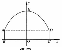 9、(05武汉)如图,隧道的截面由抛物线AED和矩形ABCD构成,矩形的长BC为8m,宽AB为2m,以BC所在的直线为x轴,线段BC的中垂线为y轴,建立平面直角坐标系。y轴是抛物线的对称轴,顶点E到坐标原点O的距离为6m。