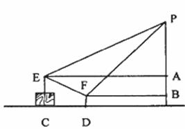 (兰州06)广场上有一个充满氢气的气球P,被广告条拽着悬在空中,甲乙二人分别站在E、F处,他们看气球的仰角分别是30°、45°,E点与F点的高度差AB为1米,水平距离 CD为5米,FD的高度为0.5米,请问此气球有多高?(结果保留到0.1米)