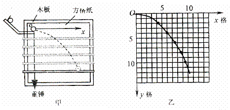 16.某同学在“研究平抛物体的运动”的实验中,通过描点法画出小球平抛运动的轨迹,并求出小球平抛运动的初速度和抛物线方程。他先调整斜槽轨道使槽口末端水平,然后在方格纸上建立好直角坐标系xOy,将方格纸上的坐标原点O与轨道槽口末端重合,Oy轴与重锤线重合,Ox轴水平(如图甲)。实验中使小球每次都从斜槽同一高度由静止滚下,经过一段水平轨道后抛出。依次均匀下移水平挡板的位置,分别得到小球在挡板上的落点,并在方格纸上标出相应的点迹,再用平滑曲线将方格纸上的点迹连成小球的运动轨迹(如图乙所示)。已知方格边长为L=5cm,重力加速度为g=10m/s2,计算结果取两位有效数字。(1)小球平抛的初速度v0=